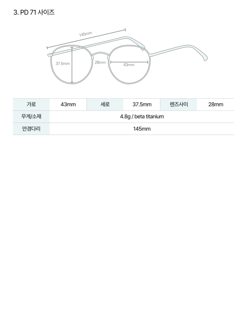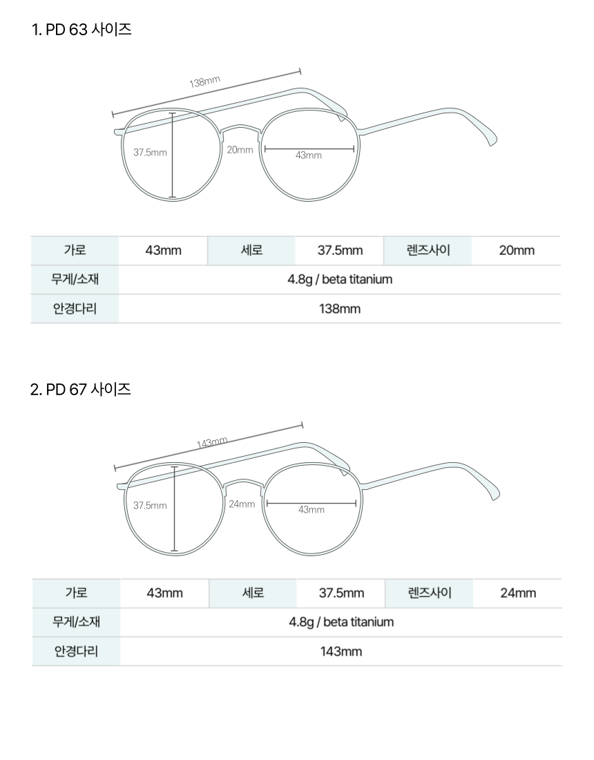 1. 다크그레이 (GUN) 색상 (PD 사이즈 63, 67, 71)