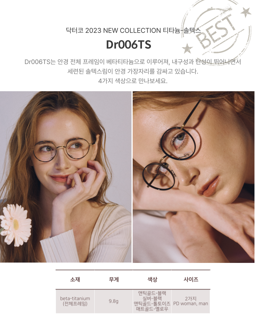 Dr006TS는 닥터코안경의 풀프레임 베타티타늄-하이엔드 제품입니다.