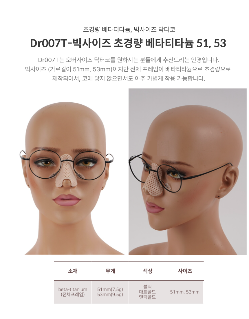 닥터코안경의 빅사이즈 초경량 베타티타늄 제품이 새로 출시되었습니다.