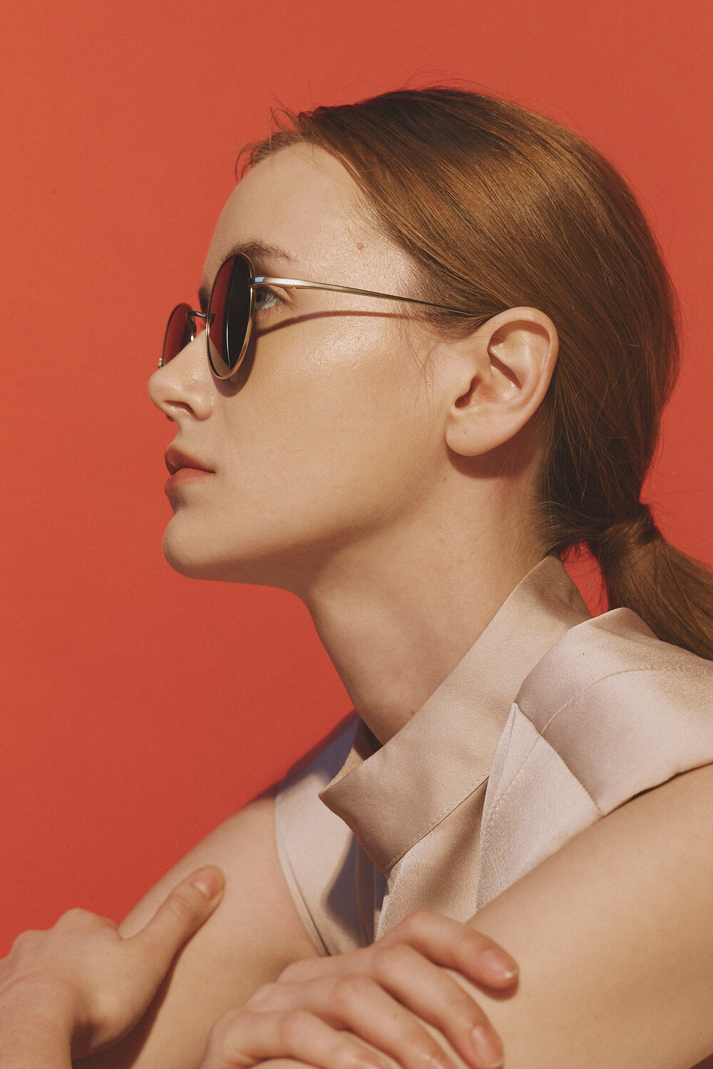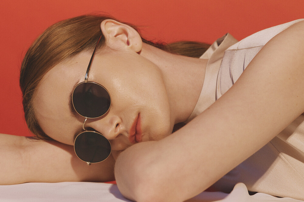 선글라스 초경량 53 - 매트골드테에, 그린렌즈가 착용된 모습입니다! 렌즈의 색상은 배송메시지에 적어주시면 변경할 수 있습니다.