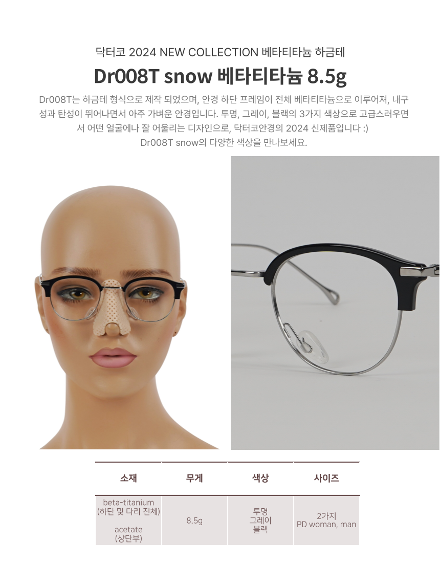 2024년 신제품, 닥터코안경의 베타티타늄-하금테 Dr008T snow 제품이 출시되었습니다.