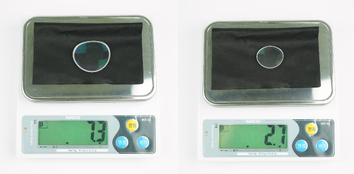3) 알이 작으면 렌즈의 무게가 줄어들고, 얇아집니다.