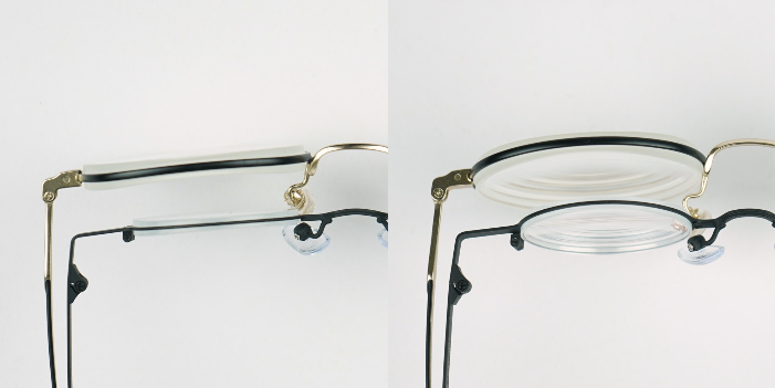 좌) 일반 안경용 -10디옵터 렌즈 / 우) Alzaga37용 -10디옵터 렌즈