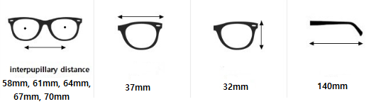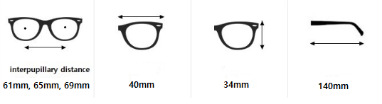본인의 동공간 거리 (PD)를 자로 재서 사이즈 선택하시면 됩니다.
