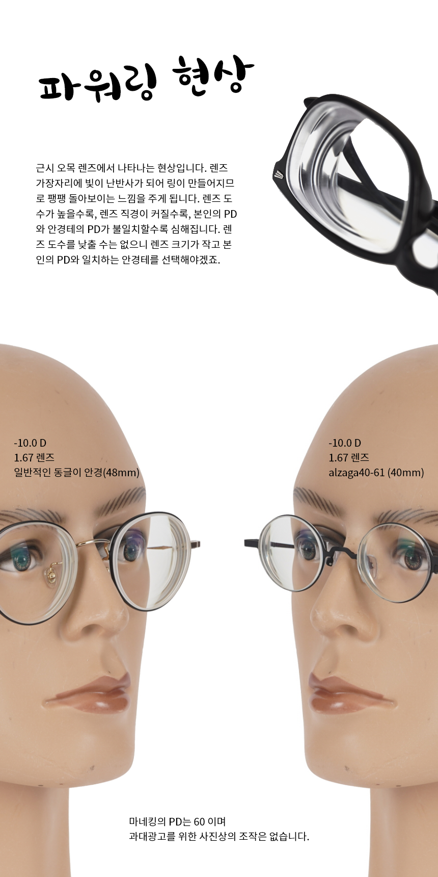2) 알이 작으면 파워링현상이 줄어듭니다. 렌즈가 팽팽도는 느낌, 어지러운 느낌이 줄어듭니다.