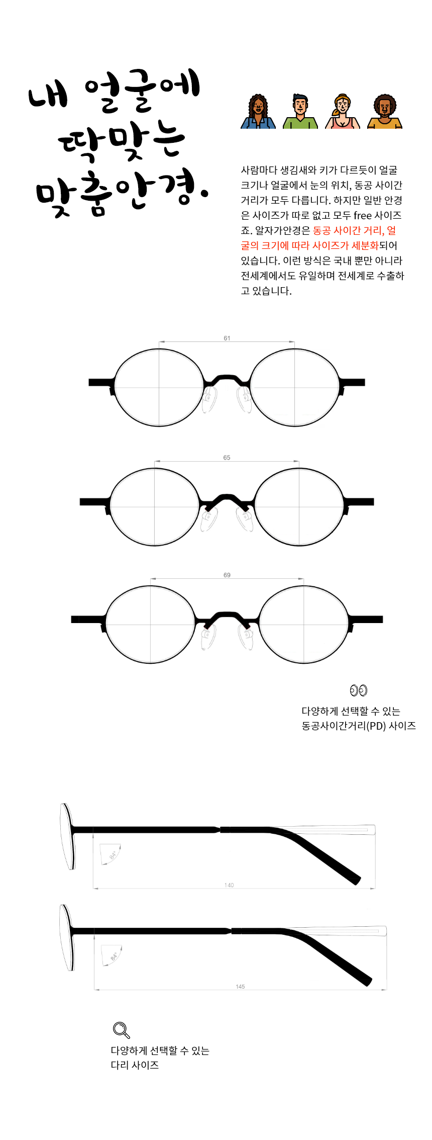 일반적으로 나오는 free size 안경으로는, 본인 사이즈보다 크거나 작은 안경을 쓰게 되는데