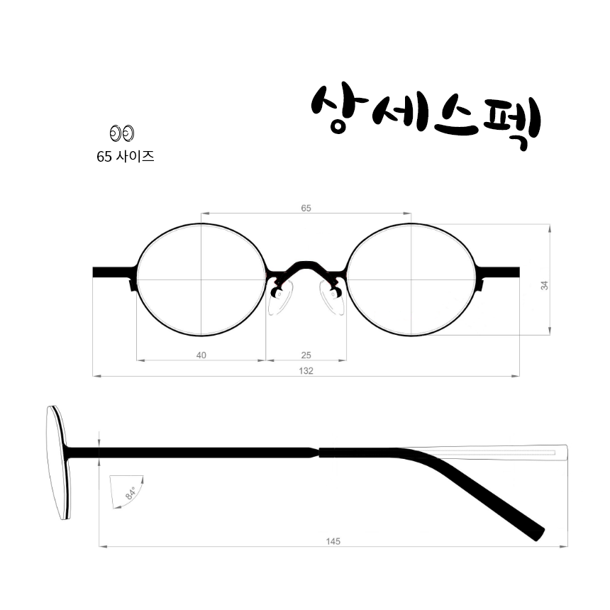 프론트 132mm, 동공간거리 65mm, 브릿지 25mm