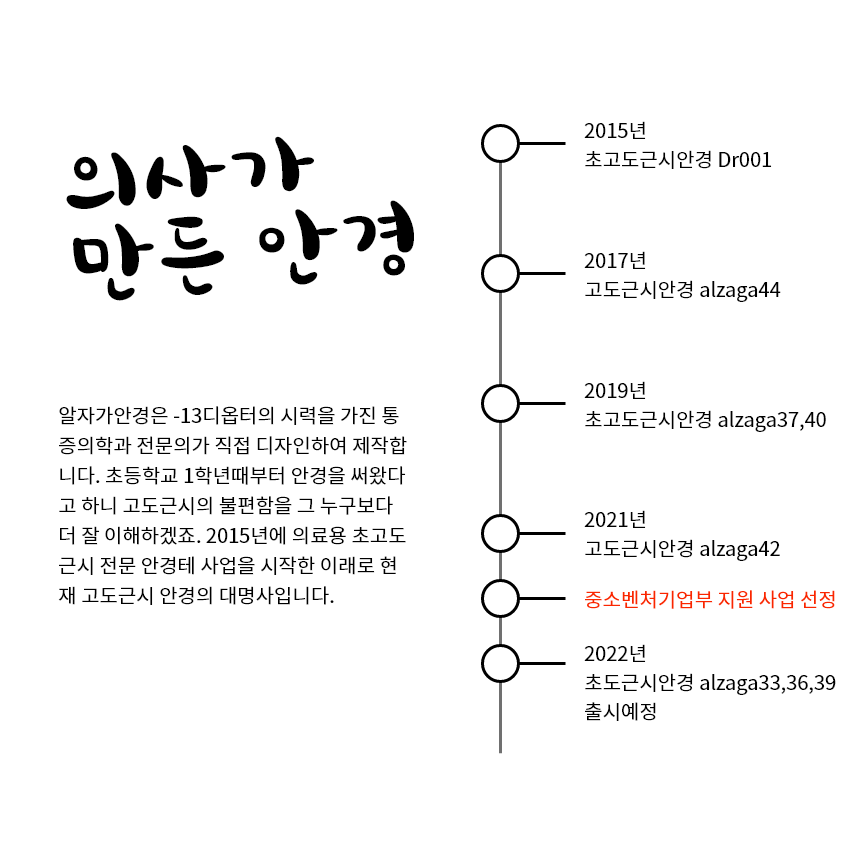 Alzaga안경은 닥터코안경의 초고도근시라인으로 렌즈의 크기를 이상적으로 최소화하는 기술력으로